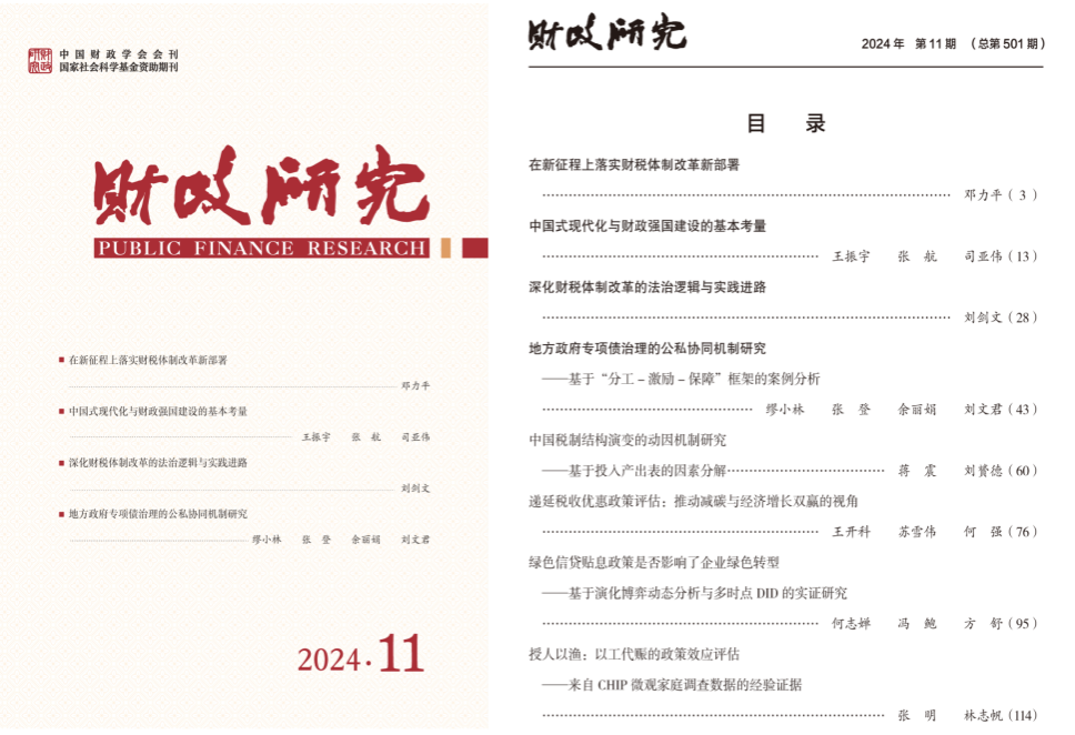 国产一区二区日本在线经济学院、地方财政研究院王振宇教授与张航博士研究生、司亚伟副教授在《财政研究》2024年第11期发表封面文章《中国式现代化与财政强国建设的基本考量》。
